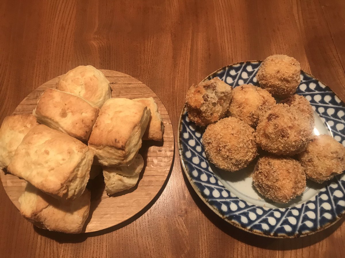 ট ইট র 高橋久美子 茶色いです コロッケと スコーンを作りすぎました スコーンは 断面がいのち よく切れる包丁でザクッと切ると よく膨らみます コロッケのジャガイモは 皮のまま茹でて皮も一緒につぶして丸めてしまいます ただ 新じゃがのみ 古く