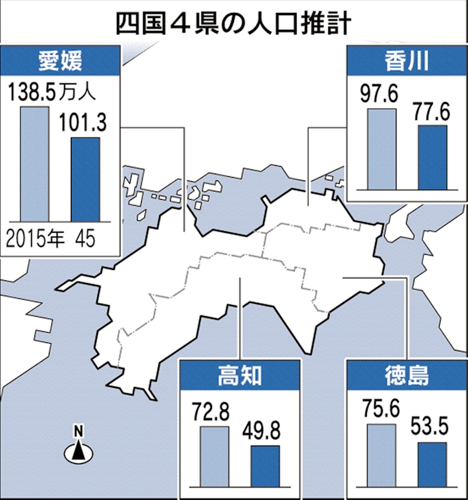 四国4県人口 45年に26 減少 減少ペース 緩和傾向も 厚労省推計 日本経済新聞