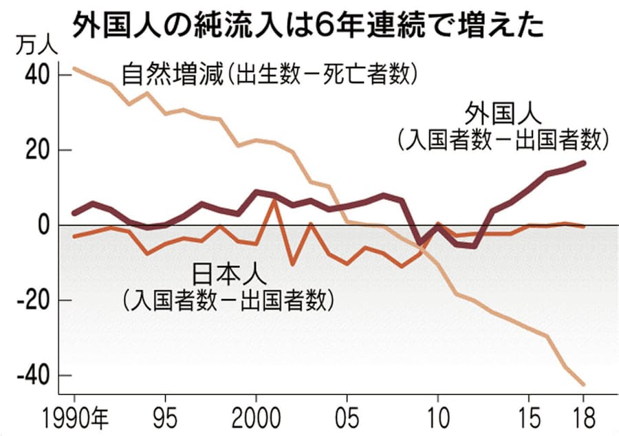 人口減少幅最大の43万人 外国人は最多 人口動態調査 日本経済新聞