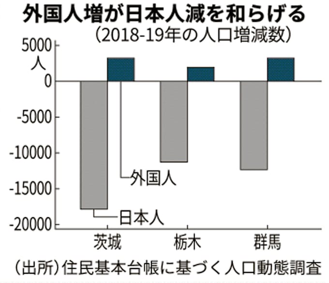 北関東3県の人口減加速 外国人の流入増 自然減和らげる 日本経済新聞